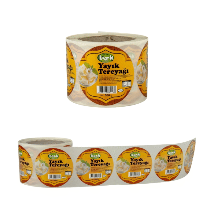 80 gr kuşe kağıttan üretilmiştir. Kuşe etiket, yüzeyi düzgünleştirilmiş ve üzerine kuşe hamuru sıvanmış yarı parlak bir yapıya sahiptir. Bu özellik, baskı sırasında mürekkebin yüzeye homojen dağılmasını sağlar ve renklerin daha canlı, net ve keskin görünmesine olanak tanır.