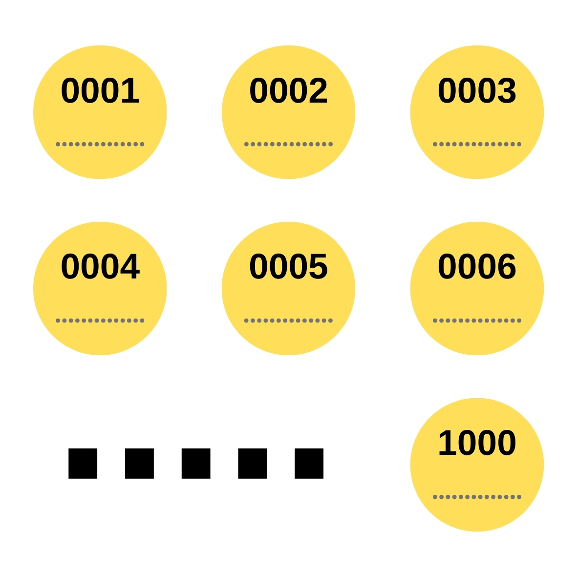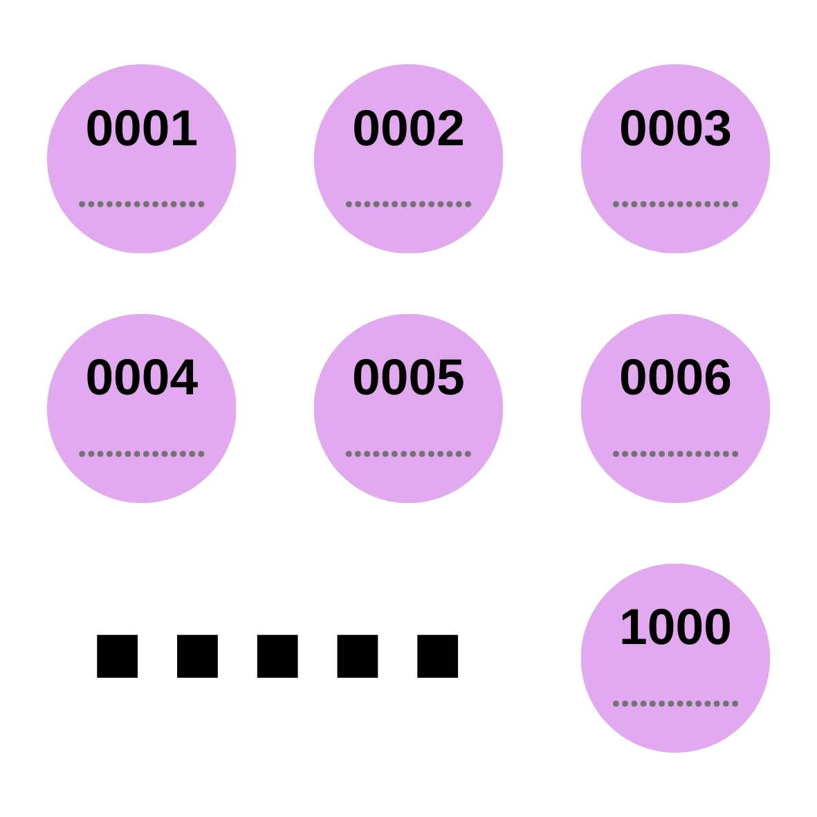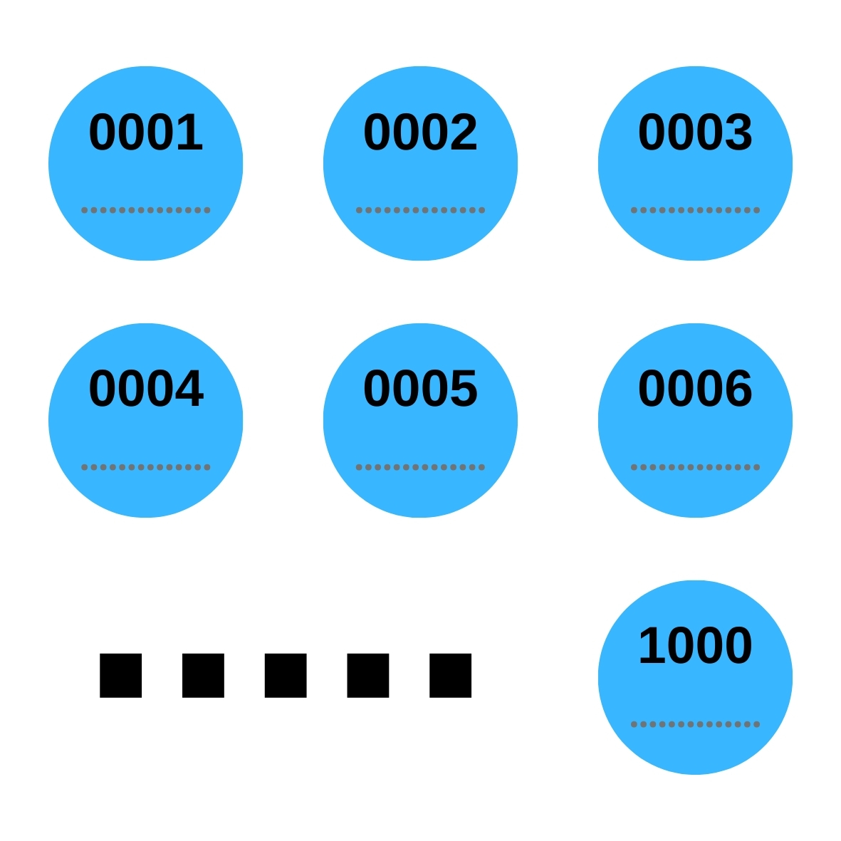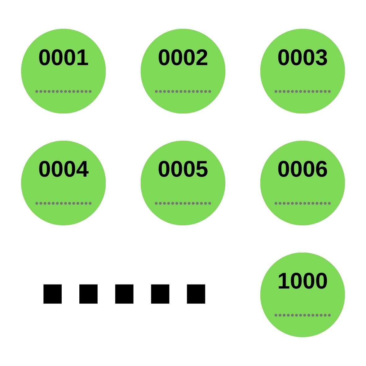Seri Numaralı Sayım Etiketi (0001-1000) – 30mm Çap 1000 Adet Kuşe Yuvarlak Stok ve Envanter Etiketi