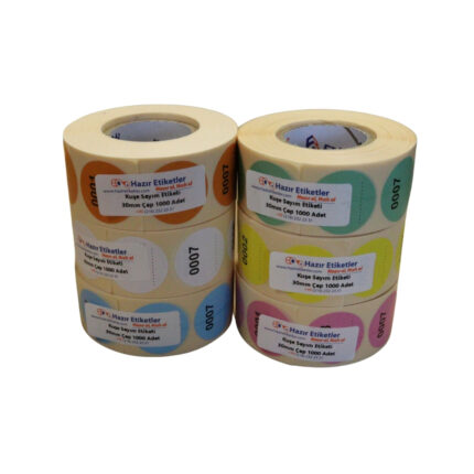 Seri Numaralı Sayım Etiketi (0001-1000) – 30mm Çap 1000 Adet Kuşe Yuvarlak Stok ve Envanter Etiketi